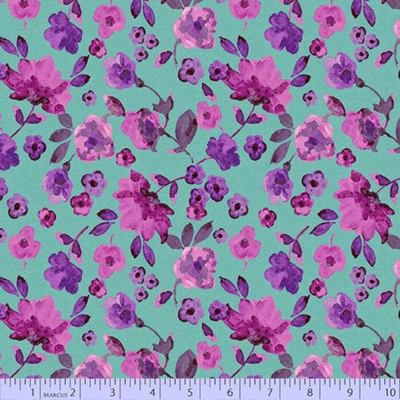 > Marcus Fabrics Night Riviera Pink Floral on Teal by Laura Berringer