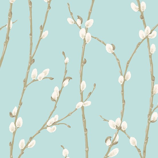 > Andover Fabrics Pussy Willows on Blue