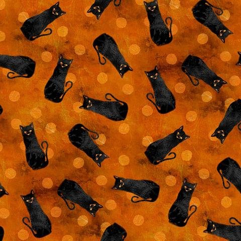 > Wilmington Prints Frightful Night Tossed Cats on Orange